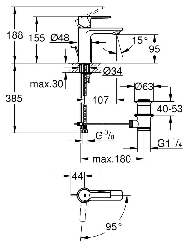 Popis Grohe LINEARE umývadlová batéria XSGrohe kartuša: keramická, povrch: chróm, montáž: jednootvorová, s odtokovou súpravou a tiahlom