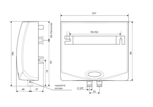 Popis Hakl MK-1 prietokový ohrievač vody 3,5/4,5/5,5 kWHakl Tlakový prietokový ohrievač s elektronickým spínaním