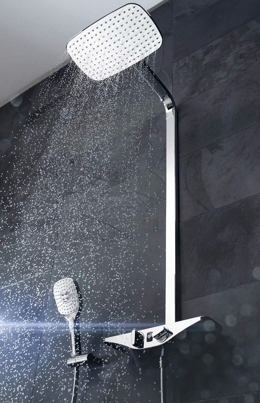 Hansa prevedenie: biela/chróm, rozmery hlavovej sprchy: 36x22 cm, s troma prúdmi