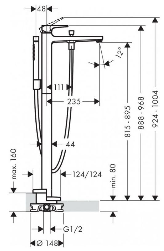Hansgrohe METROPOL vaňová batéria do podlahy čiernavýška: 968 mm, materiál: mosadz, montáž: do podlahy