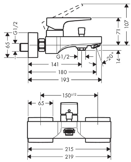 Hansgrohe METROPOL vaňová batériavyloženie batérie: 180 mm, rozteč: 150 mm, prietok: 22 l/min, prevedenie: chróm