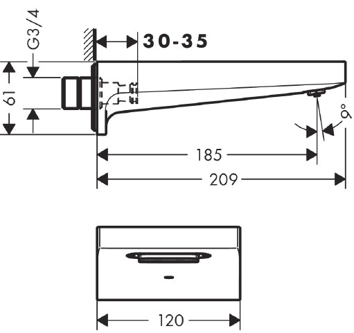 Popis Hansgrohe METROPOL vaňový výtokHansgrohe vyloženie výtoku: 185 mm, druh montáže: na stenu, prietok: 28 l/min