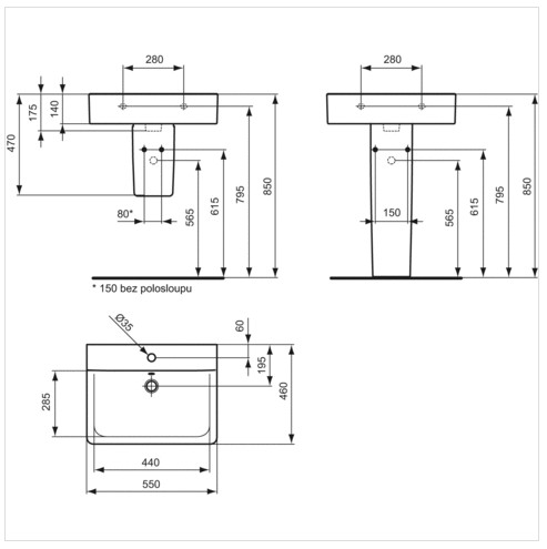 Popis Ideal Standard CONNECT CUBE 55x46 cm E713901Ideal Standard biele umývadlo 55 x 46 x 17,5 cm