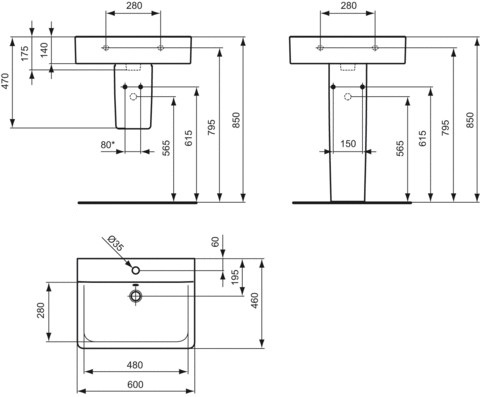 Popis Ideal Standard CONNECT CUBE 60x46 cm E714101Ideal Standard biele umývadlo 60 x 46 x 17,5 cm