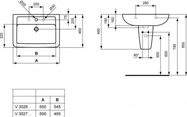 Popis Ideal Standard EUROVIT umývadlo 60/65 cmIdeal Standard rozmery: 60 x 46 / 65 x 46 cm, farba: biela, s prepadom
