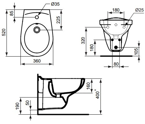 Popis Ideal Standard EUROVIT závesný bidetIdeal Standard rozmery: 56 x 36 cm, druh montáže: na stenu, farba: biela