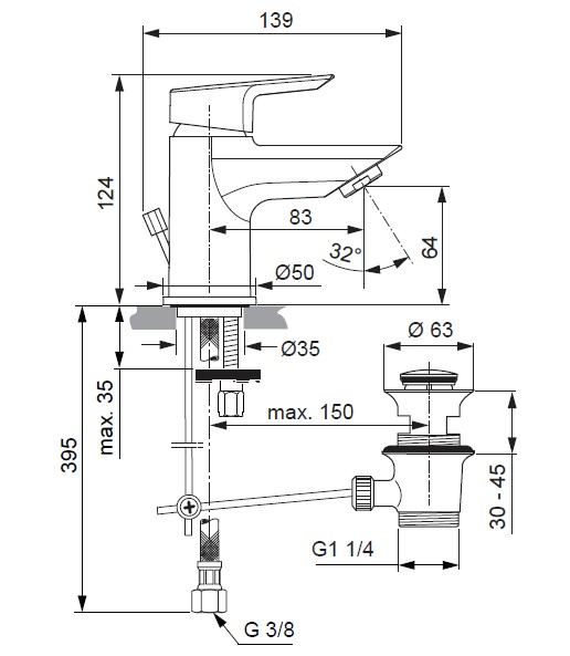 Popis Ideal Standard TESI umývadlová batéria Picollo s odtokovou súpravouIdeal Standard s odpadovou súpravou ovládanou tiahlom, výška vývodu: 64 mm