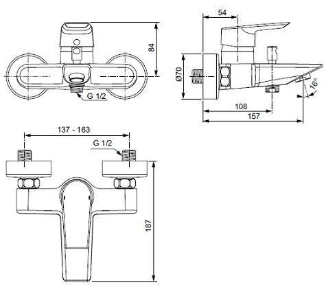 Popis Ideal Standard TESI vaňová batéria nástennáIdeal Standard dĺžka vývodu: 157 mm, s automatickým prepínačom sprcha/vaňa