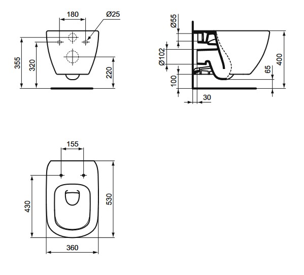 Popis Ideal Standard závesné WC TESI AQUABLADEIdeal Standard rozmery: 360 x 530 x 337 mm, montáž: na stenu