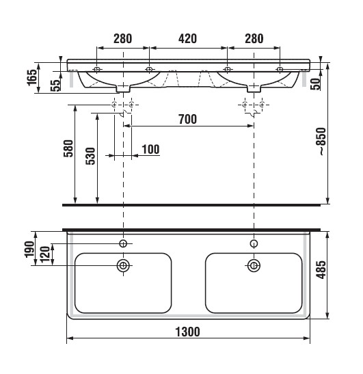 Popis Jika dvojumývadlo 130 cm CUBITO PUREJika rozmer: 130 x 48,5 x 16,5 cm, s 2 otvormi pre batériu, s prepadom