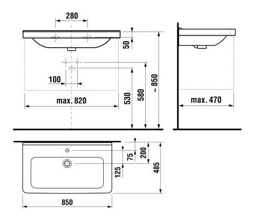 Popis Jika umývadlo 85 cm CUBITO PUREJika rozmer: 85 x 48,5 x 16,5 cm, s otvorom pre batériu