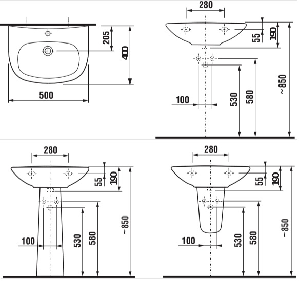 Jika ZETA umývadlo 50 cm 810390umývadlo 50 x 40 cm, s 1 otvorom pre batériu uprostred