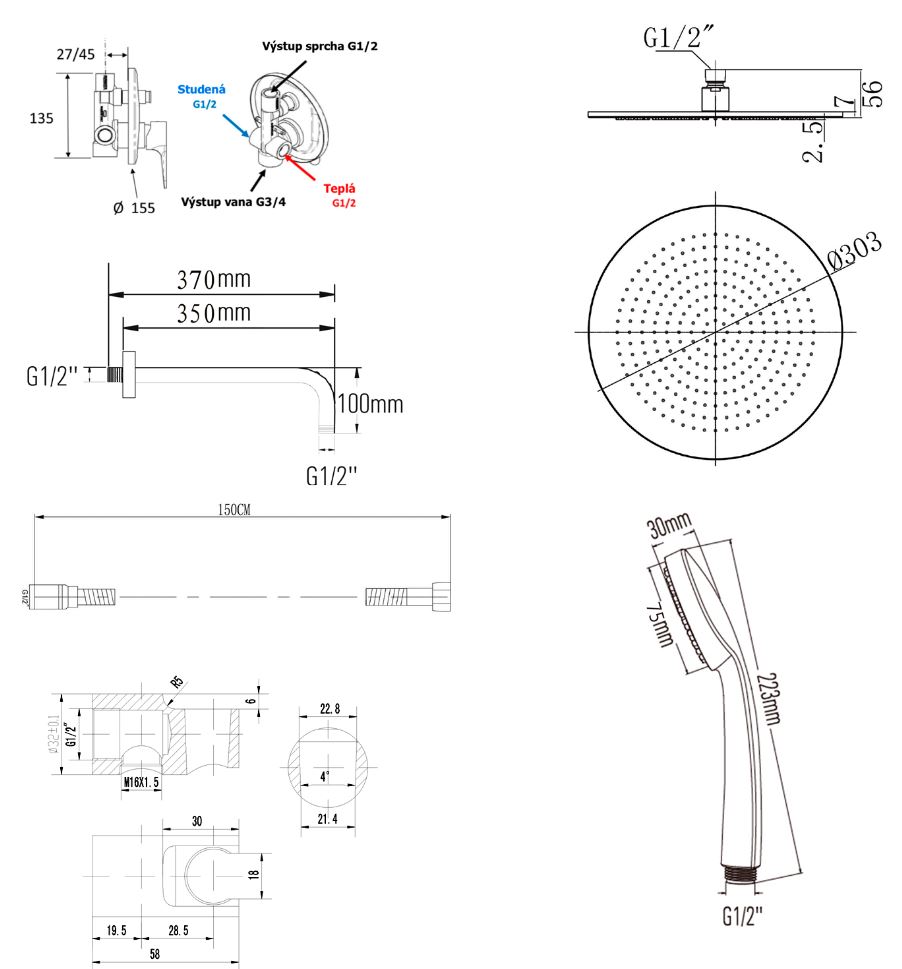 Popis KAI sprchový set 7v1 podomietkový s tlakovým prepínačom a pákovou batériou chrómSapho set obsahuje: podomietkovú batériu, podomietkové teleso, ručnú sprchu, hlavovú sprchu, predlžovacie ramienko, hadicu, držiak