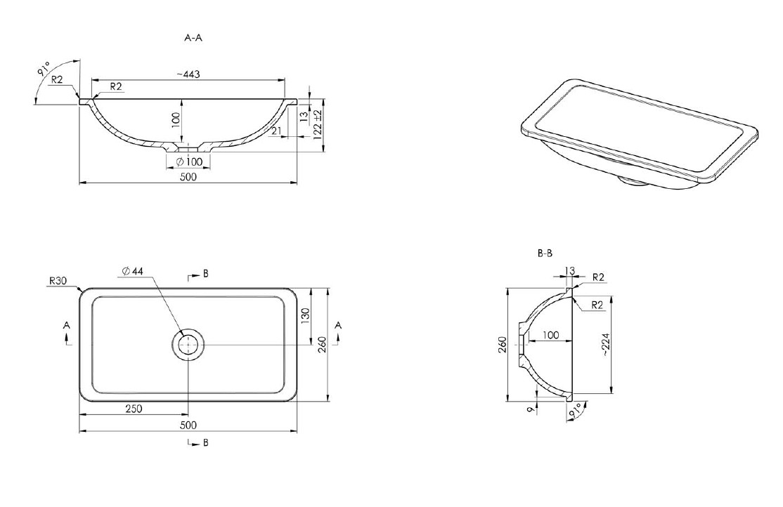 Popis KAMA umývadlo z liateho mramoru 50 x 26 cm, bieleSapho rozmery: 50 x 26 x 12 cm, druh montáže: polozápustné, pod dosku, bez prepadu,