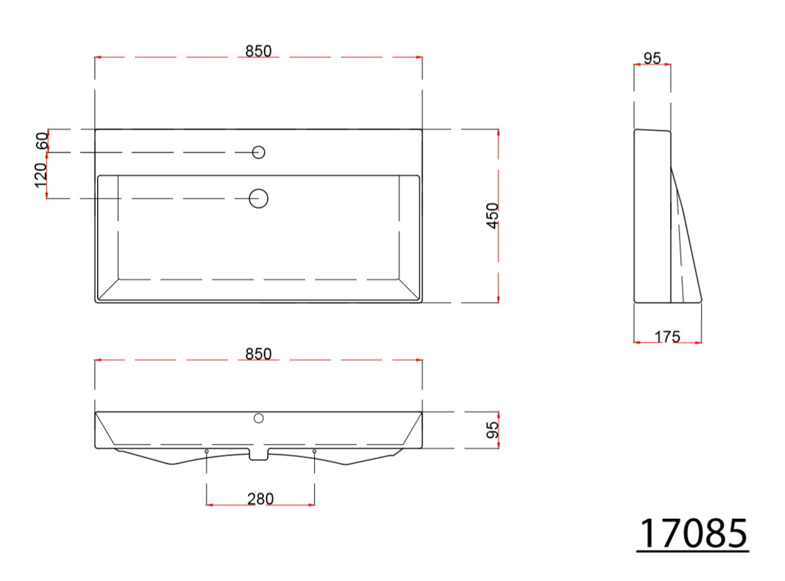Popis KARE umývadlo na dosku 85 cmSapho Rozmery: 85x10x45 cm, Farba: biela, Druh montáže: na dosku, Materiál: keramika