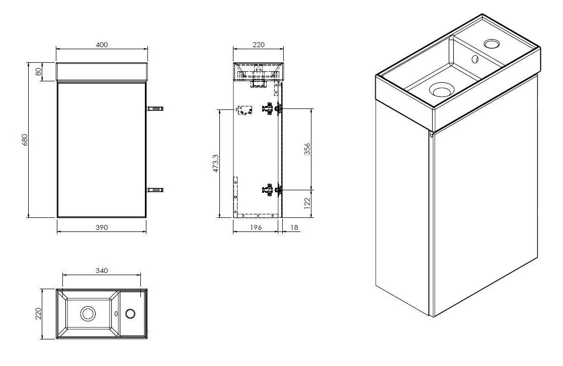 Popis Kielle OUDEE skrinka s umývadielkom 40 cm čierna matnáKielle rozmer 40x68x22 cm, skrinka s ľavými/pravými dvierkami