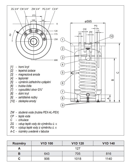 Popis Kospel SWK stacionárny výmenník 100/120/140Kospel Výmmeník na TÚV s energetickou triedou A