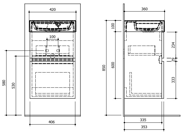 LARGO skrinka s umývadlom 40 cm dub striebornýrozmery skrinky: 41x60x35 cm, rozmery umývadla: 42x10x36 cm, farba: dub strieborný