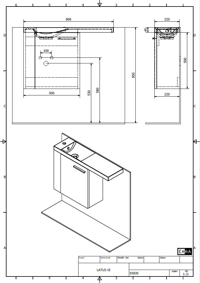 LATUS VI umývadlová skrinka 50 cm biela ľavározmery: 50x50x22 cm, farba: biela, prevedenie: ľavá