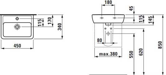 Popis Laufen LAUFEN PRO A umývadielko 45 cm biele 8.1195.1.000.104.1Laufen rozmery: 45 x 34 x 14,5 cm, s jedným otvorom pre batériu