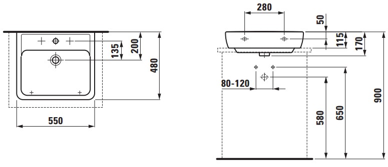 Popis Laufen LAUFEN PRO A umývadlo 55 cm biele 8.1795.1.000.104.1Laufen rozmery: 55 x 48 x 18,5 cm, brúsena spodná časť umývadla