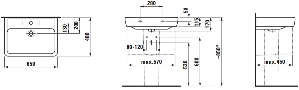 Popis Laufen LAUFEN PRO A umývadlo 65 cm biele 8.1895.3.000.104.1Laufen rozmery: 65 x 48 x 17 cm, s otvorom pre batériu v strede