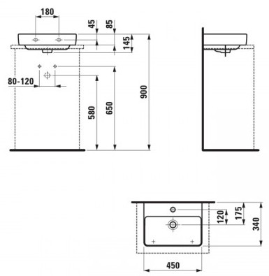 Popis Laufen LAUFEN PRO S umývadielko 45 cm 8.1696.1.000.104.1Laufen rozmery: 45 x 34 x 14,5 cm, brúsená spodná časť, s otvorom pre batériu