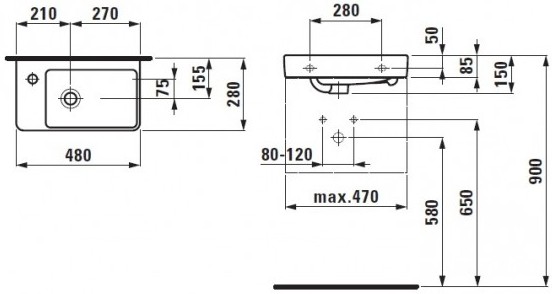 Laufen LAUFEN PRO S umývadielko 48 cm ľavé 8.1595.5.000.104.1rozmery: 48 x 28 x 15 cm, s otvorom pre batériu vľavo