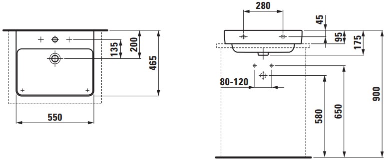 Popis Laufen LAUFEN PRO S umývadlo 55 cm bieleLaufen rozmery: 55 x 46,5 x 17,5 cm, brúsená spodná časť, otvor pre batériu: áno/nie