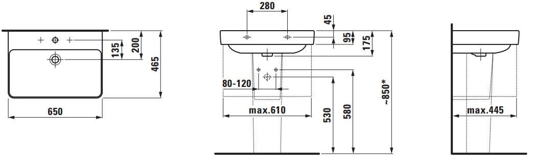 Popis Laufen LAUFEN PRO S umývadlo 65 cm biele 8.1096.4.000.104.1Laufen rozmery: 65 x 46,5 x 17,5 cm, s otvorom pre batériu uprostred