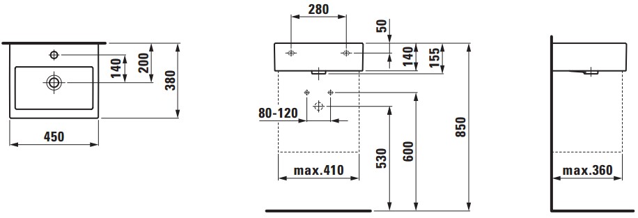 Popis Laufen LIVING CITY umývadielko 45 cmLaufen rozmery: 45 x 38 x 15,5 cm, otvor pre batériu: áno/nie, montáž: na stenu