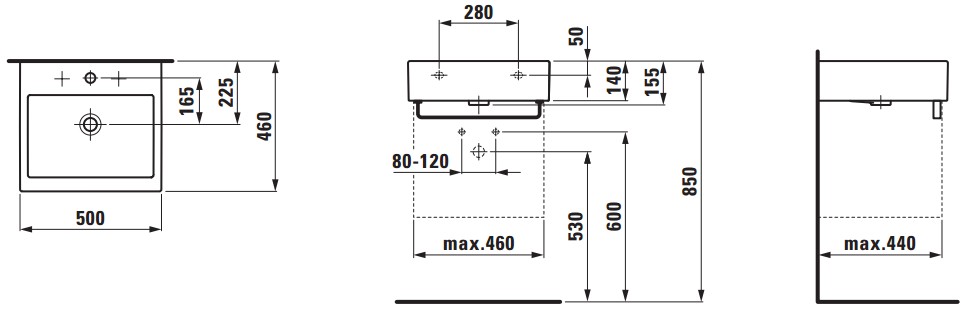 Laufen LIVING CITY umývadlo 50 cm bielerozmery: 50 x 46 x 15,5 cm, otvor pre batériu: áno/nie, montáž: závesné na stenu