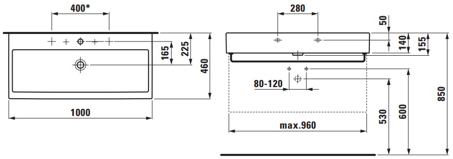 Popis Laufen LIVING CITY umývadlo nábytkové 100 cm bieleLaufen rozmery: 100 x 46 x 15,5 cm, otvor pre batériu: 1 / 2 otvory, brúsená spodná hrana