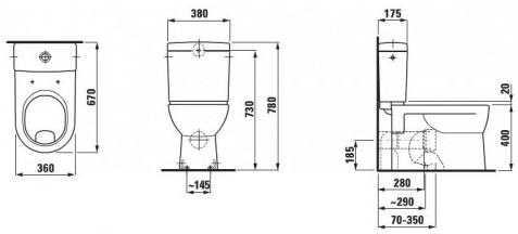 Popis Laufen PRO WC kombi ploché splachovanieLaufen rozmery: 67 x 36 x 40 cm, druh montáže: stojaci, vario odpad, ploché splachovanie