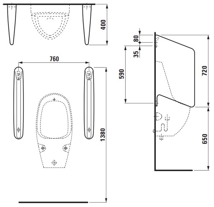 Popis Laufen RION pisoárová stena, 8.4760.0.000.000.1Laufen urinálová deliaca stena, rozmery 76 x 40 x 73 cm