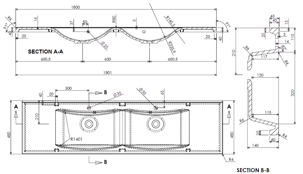 LUCIOLA dvojumývadlo z liateho mramoru 180 cmrozmery: 180 x 50 cm, s prepadom, druh montáže: do nábytku, s 2 otvormi pre batériu