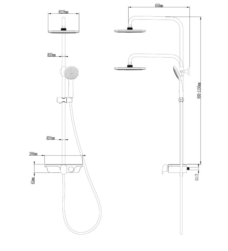 Popis MARCO sprchový stĺp s poličkou bielyAqualine batéria: páková, výška: 80-115 cm, priemer hlavovej sprchy: 228 mm
