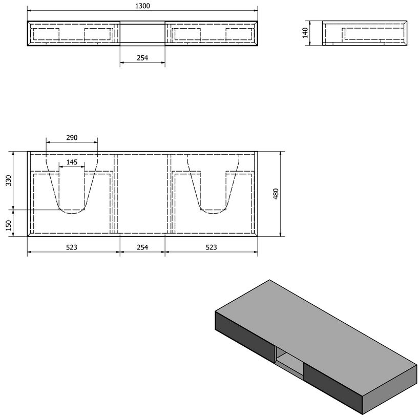 Popis MORIAN skrinka pod umývadlo 130-140 cm dubSapho rozmery: 130-140 x 14 x 48 cm, materiál: HPL laminát, farba: dub