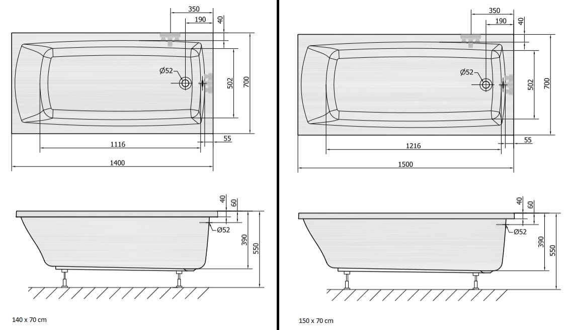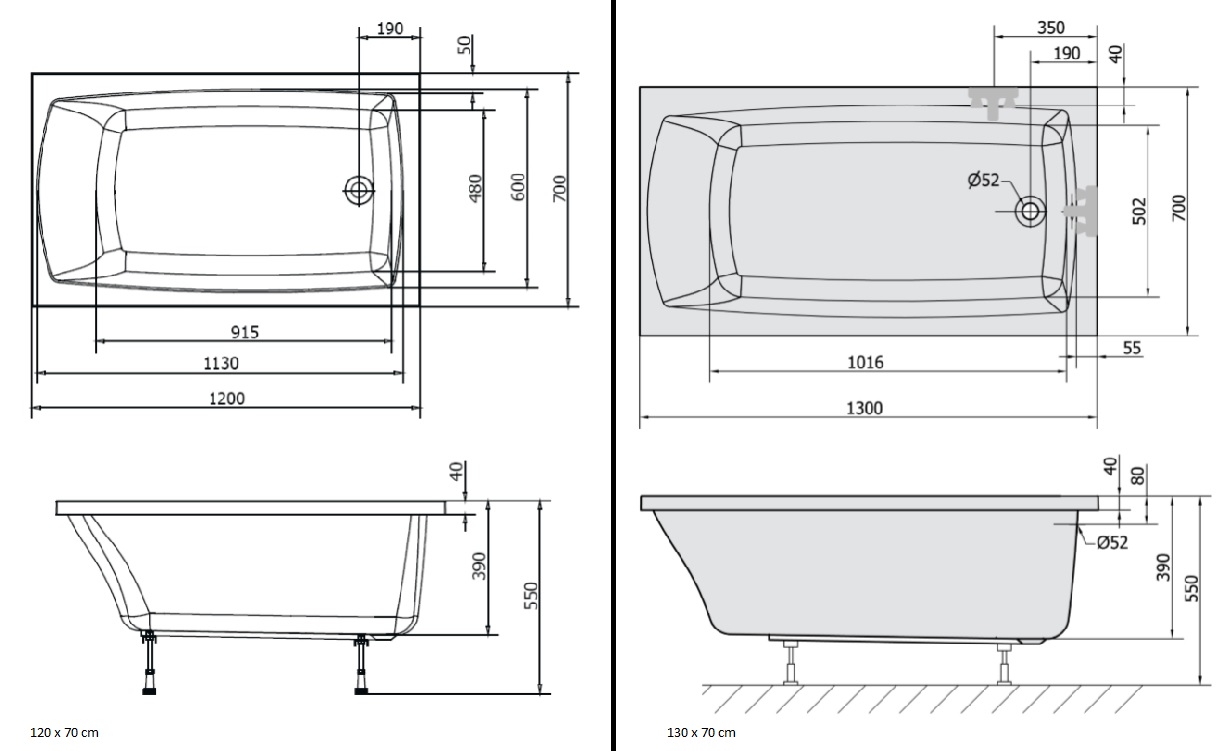 Polysan LILY obdĺžniková vaňa 120/130/140/150 x 70 cmrozmery: 120 x 70, 130 x 70, 140 x 70, 150 x 70 cm, materiál: akrylát, biela