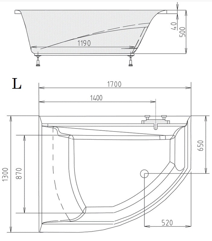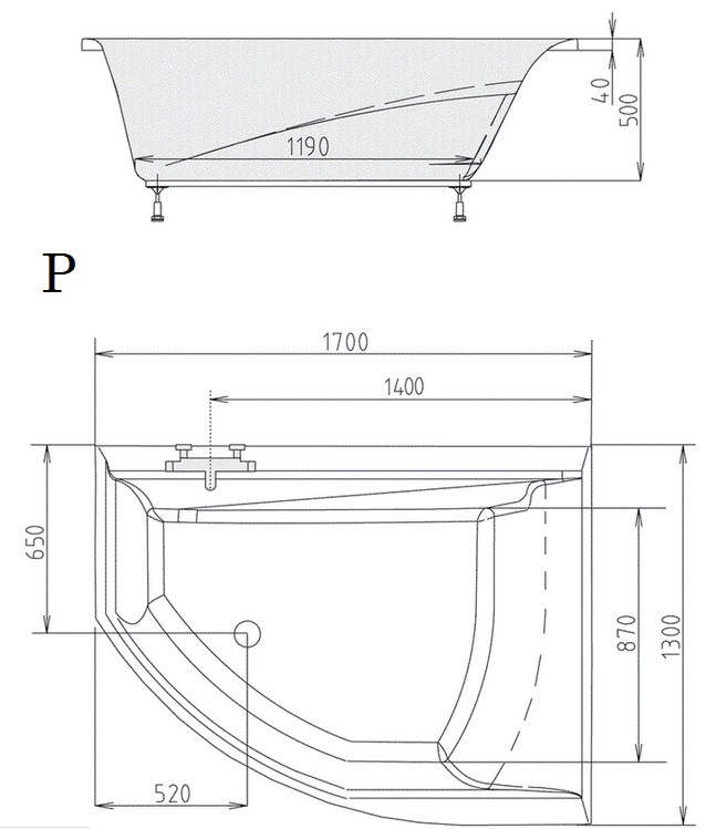 Polysan TANDEM asymetrická vaňa 170 x 130 cm ľavá/praváRozmery: 170x130 cm, Objem: 395 l, Materiál: akrylát