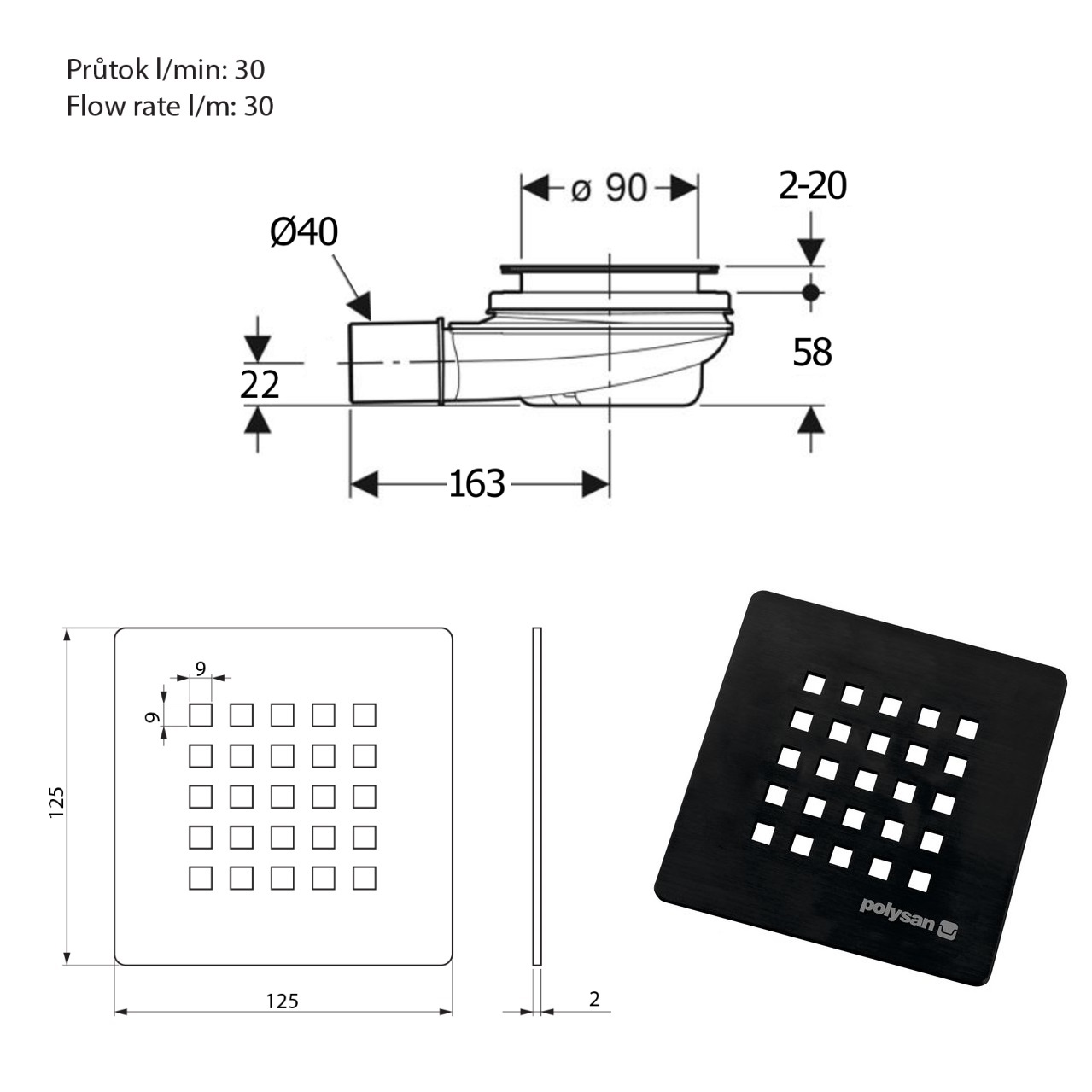 Polysan TRENECA vaničkový sifón 90 mm čierna matnáprietok: 30 l/min, priemer odpadového potrubia: 40 mm, farba: čierna matná