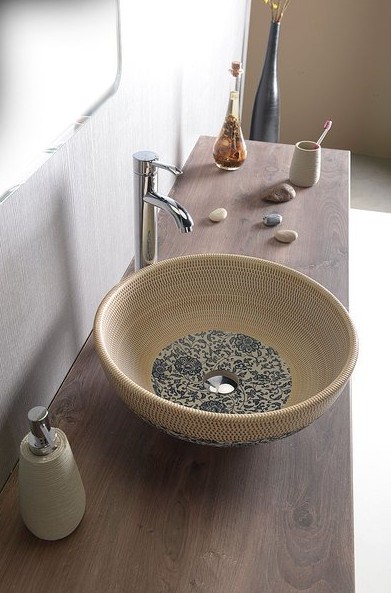 Popis PRIORI umývadlo na dosku 42 cm béžové s modrým vzoromSapho rozmery: 42 x 15 cm, druh montáže: postavenie na dosku, materiál: keramika