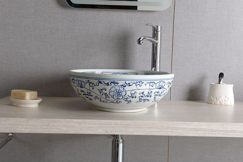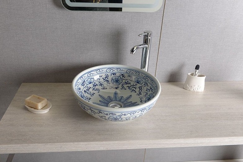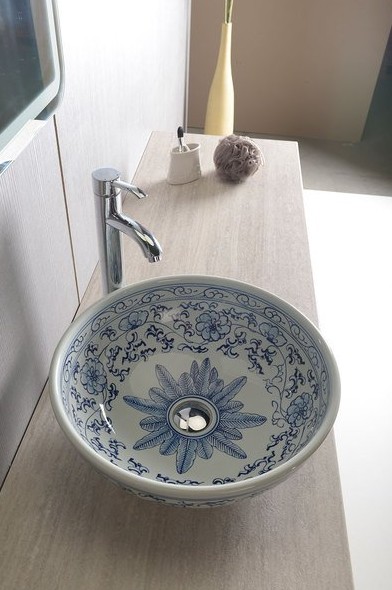 PRIORI umývadlo na dosku 42 cm biele s modrým vzoromrozmery: 42 x 15 cm, druh montáže: postavenie na dosku, materiál: keramika