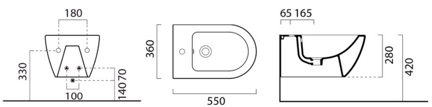 PURA závesný bidet čiernyrozmery: 360 x 280 x 550 mm, materiál: keramika, farba: čierna, Extraglaze