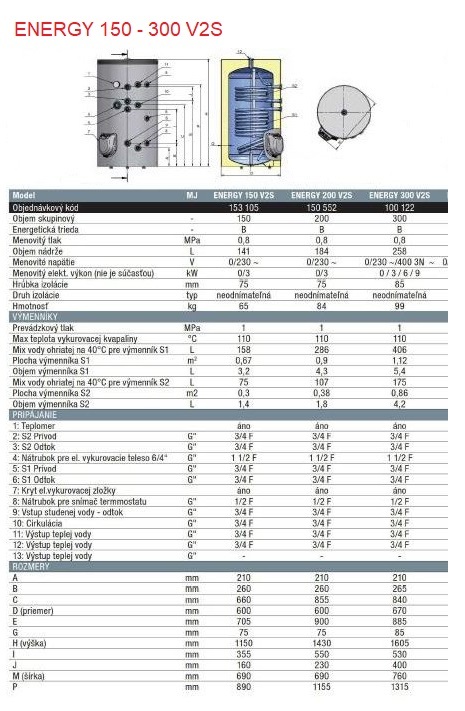 Popis Q-termo ENERGY 300 V2S ohrievač vody s dvoma hadmiQ-TERMO objem 300 l, stacionárny zásobník s 2 výmenníkmi