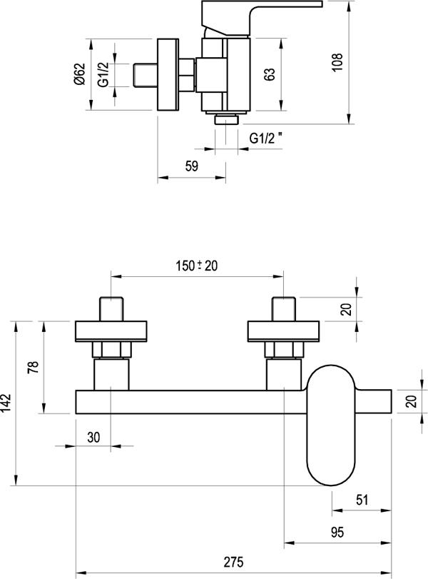 Popis Ravak CHROME CR 032.00/150 sprchová nástenná batériaRavak priestorovo úsporná, chróm, rozteč 150 mm