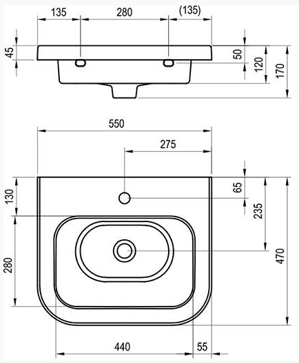 Popis Ravak CHROME umývadlo 55 cm XJG01155000Ravak rozmery: 55 x 49 cm, s prepadom