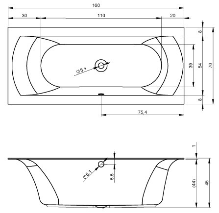 Riho LINARES obdĺžniková vaňa 160/170/180 cmrozmery: 160x70/170x75/180x80 cm , so sníženým okrajom