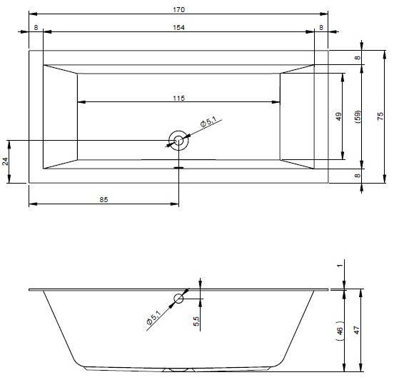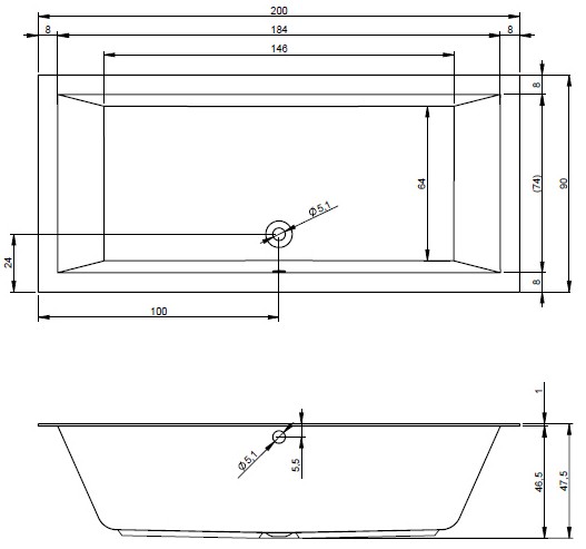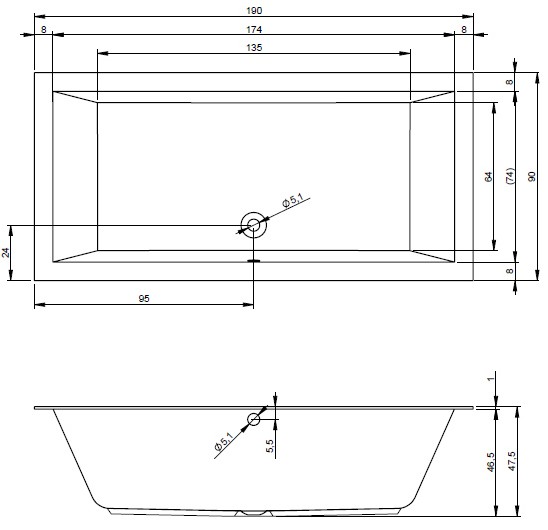Popis Riho obdĺžniková vaňa LUGO 160-170-180-190-200 cmRiho rozmery: 160x70/170x75/180x80/180x90/190x80/190x90/200x90 cm, so sníženým okrajom s výškou 1 cm