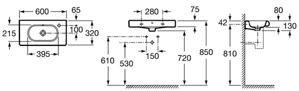 Popis Roca MERIDIAN umývadlo kompaktné 60 cm 732724T000Roca rozmery: 60 x 32 x 13 cm, druh montáže: na stenu, otvor pre batériu vpravo
